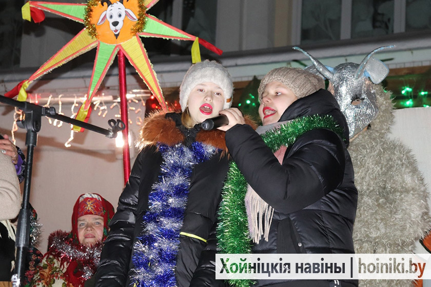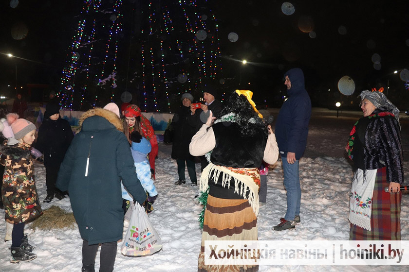 С песнями, плясками и отличным настроением: на открытой площадке Центра культуры г. Хойники сегодня организовали и провели музыкально-театрализованное представление «А у нас — Колядки»