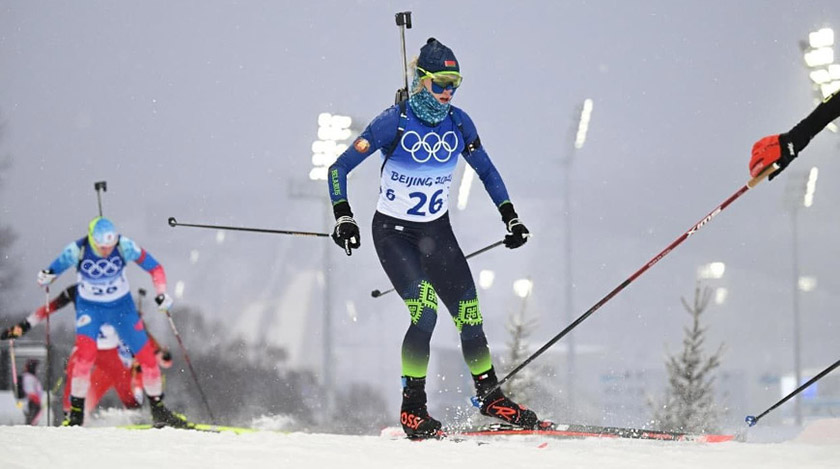 Лидер белорусской команды Динара Алимбекова ушла на дистанцию 15-й, отставая от победительницы вчерашнего спринта норвежки Марте Ройселанн на полторы минуты. Чисто отстрелявшись на двух рубежах из положения лежа, белоруска поднялась на девятое место. Но на первой стойке стрельба у нее разладилась — Динара Алимбекова заработала три штрафных круга. Последний огневой рубеж был пройден безупречно и в итоге она заняла 19-е место.