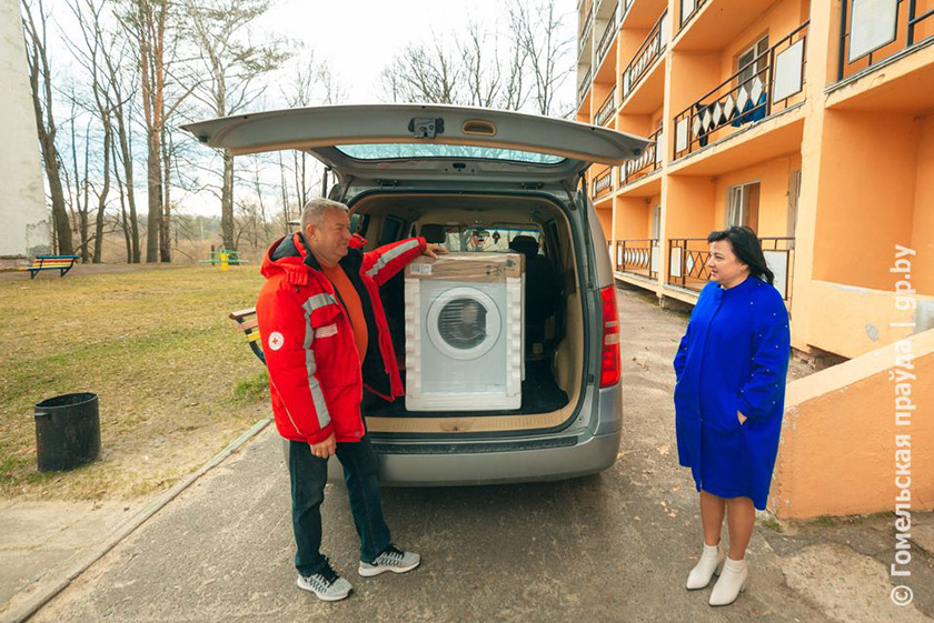 Областная организация Белорусского Красного Креста доставила две стиральные машины в санаторий «Золотые пески» Гомельского района. Сейчас здесь живут 34 гражданина Украины, в том числе три ребенка.